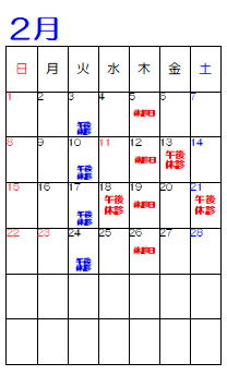 | 月 | 火 | 水 | 木 | 金 | 土 | |